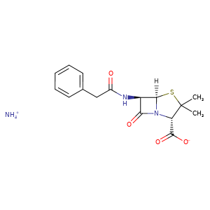 | 异名/同义词 | 4-THIA-1-AZABICYCLO(3.2.0)HEPTANE-2-CARBOXYLIC ACID, 3,3-DIMETHYL-7-OXO-6-((PHENYLACETYL)AMINO)- (2S,5R,6R)-, MONOAMMONIUM SALT 4-THIA-1-AZABICYCLO(3.2.0)HEPTANE-2-CARBOXYLIC ACID, 3,3-DIMETHYL-7-OXO-6-((PHENYLACETYL)AMINO)-(2S-(2.ALPHA.,5.ALPHA.,6.BETA.))-, MONOAMMONIUM SALT AMMONIUM PENICILLIN G BENZYLPENICILLIN AMMONIUM BENZYLPENICILLIN AMMONIUM [WHO-DD] PENICILLIN G AMMONIUM PENICILLIN G AMMONIUM SALT