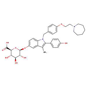 | SMILES | c1cc2n(c(-c3ccc(cc3)O)c(c2cc1O[C@@H]4O[C@@H]([C@H]([C@@H]([C@H]4O)O)O)C(=O)O)C)Cc5ccc(OCCN6CCCCCC6)cc5 |