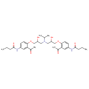 N(C(C)C)(CC(COc1c(cc(cc1)NC(CCC)=O)C(=O)C)O)CC(COc2c(cc(cc2)NC(CCC)=O)C(=O)C)O