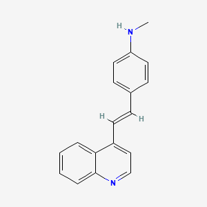 | 异名/同义词 | BENZENAMINE, N-METHYL-4-(2-(4-QUINOLINYL)ETHENYL)- N-METHYL-4-(2-(4-QUINOLINYL)VINYL)ANILINE N-METHYL-4-(2-(4-QUINOLINYL)ETHENYL)BENZENAMINE N-METHYL-4-(2-QUINOLIN-4-YLETHENYL)ANILINE NSC-407350 QUINOLINE, 4-(P-(METHYLAMINO)STYRYL)-