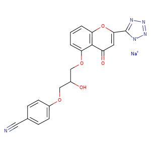 | 异名/同义词 | (+/-)-P-(2-HYDROXY-3-((4-OXO-2-(1H-TETRAZOL-5-YL)-4H-1-BENZOPYRAN-5-YL)OXY)PROPOXY)BENZONITRILE MONOSODIUM SALT BENZONITRILE, 4-(2-HYDROXY-3-((4-OXO-2-(1H-TETRAZOL-5-YL)-4H-1-BENZOPYRAN-5-YL)OXY)PROPOXY)-, MONOSODIUM SALT, (+/-)- CROMITRILE SODIUM CROMITRILE SODIUM [USAN] TR-2855