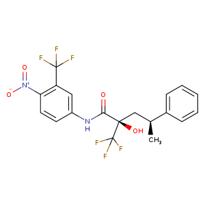 C(F)(F)(F)c1c([N+](=O)[O-])ccc(c1)NC([C@](C[C@H](C)c2ccccc2)(C(F)(F)F)O)=O