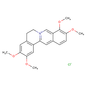 | 异名/同义词 | BERBINIUM, 7,8,13,13A-TETRADEHYDRO-2,3,9,10-TETRAMETHOXY-, CHLORIDE DIBENZO(A,G)QUINOLIZINIUM, 5,6-DIHYDRO-2,3,9,10-TETRAMETHOXY-, CHLORIDE (1:1) FIBRAURETIN NSC-209407 PALMATINE CHLORIDE PALMATINE CHLORIDE [USP-RS] PALMATINE CHLORIDE [WHO-DD]