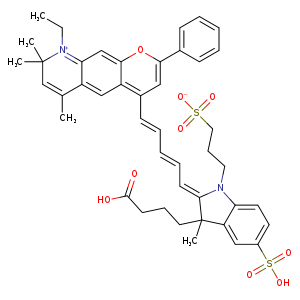 | SMILES | C(CCC(O)=O)C\1(C)c2c(N(CCCS(=O)(=O)[O-])/C1=C\C=C\C=C\C3=c4c(cc=5c(c4)C(C)=CC(C)(C)[N+]5CC)OC(=C3)c6ccccc6)ccc(S(=O)(=O)O)c2 |