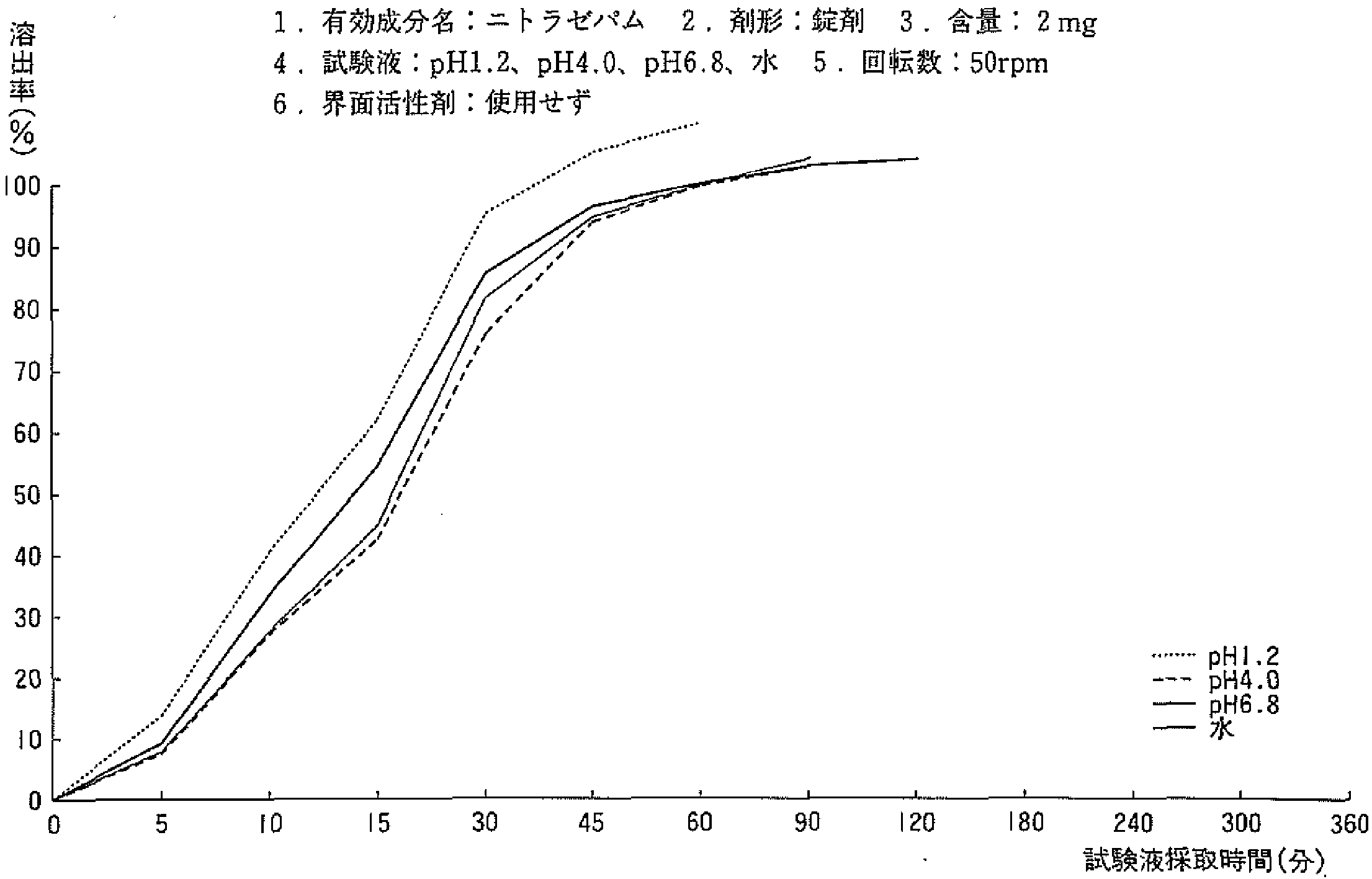 | 溶出曲线测定例 | 成分名称:ニトラゼパム 英文名:Nitrazepam 含量:2mg ![]() |