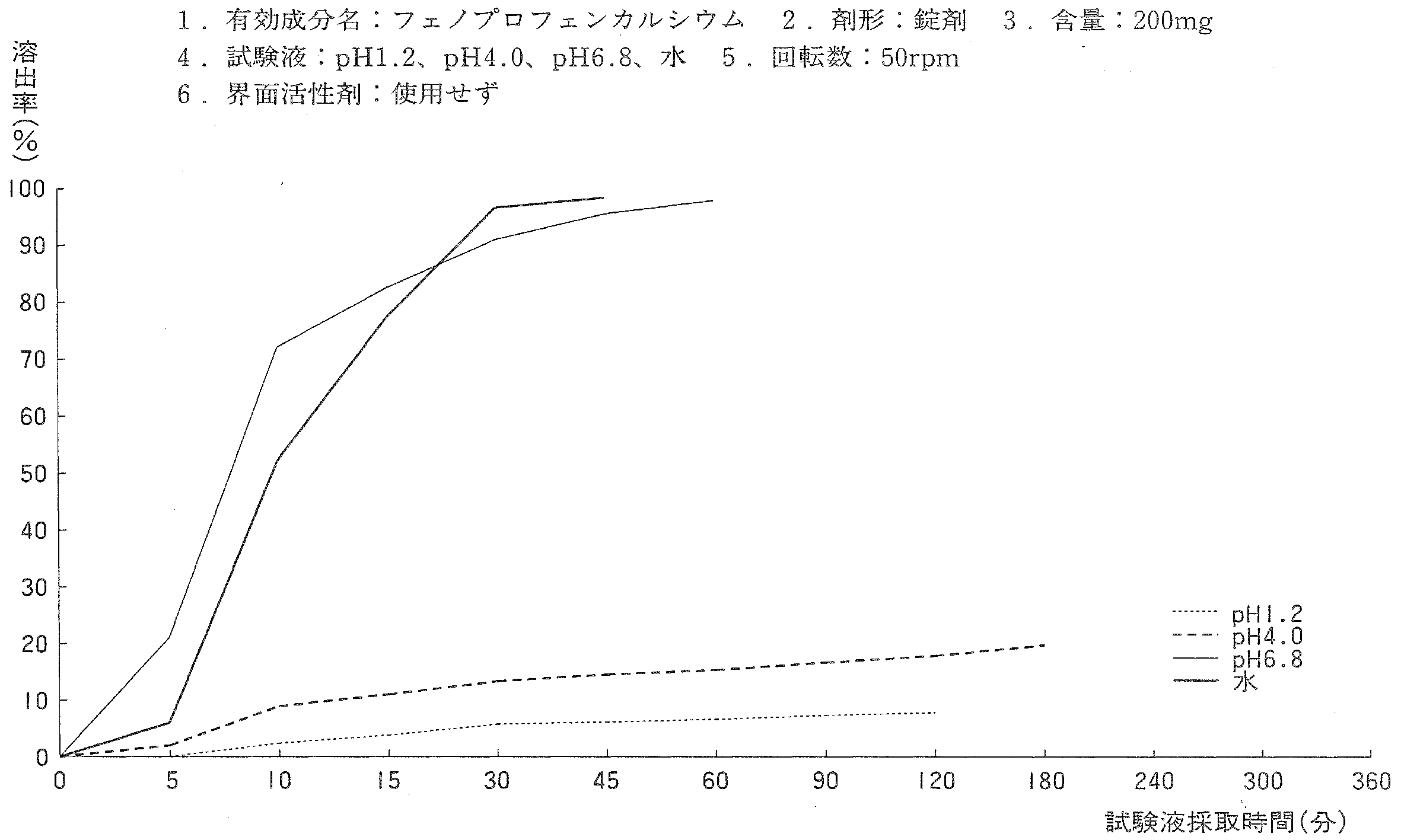 | 溶出曲线测定例 | 成分名称:フェノプロフェンカルシウム 英文名:Fenoprofen Calcium 含量:200mg ![]() |