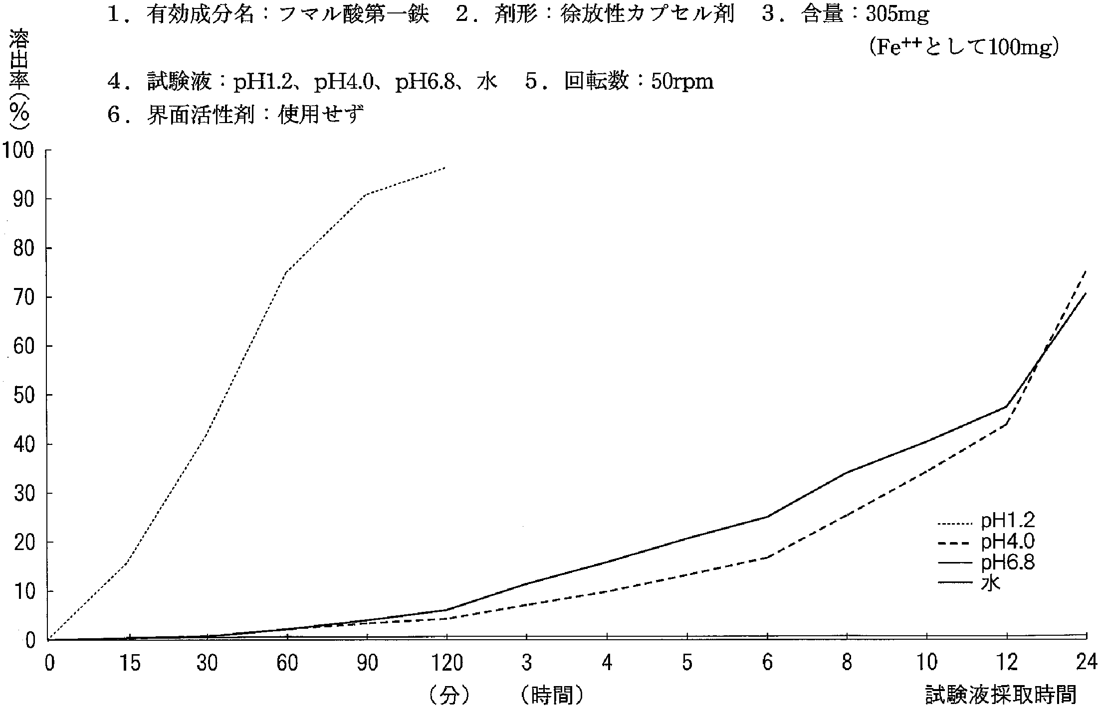 | 溶出曲线测定例 | 成分名称:フマル酸第一鉄 英文名:Ferrous Fumarate 含量:305mg ![]() |