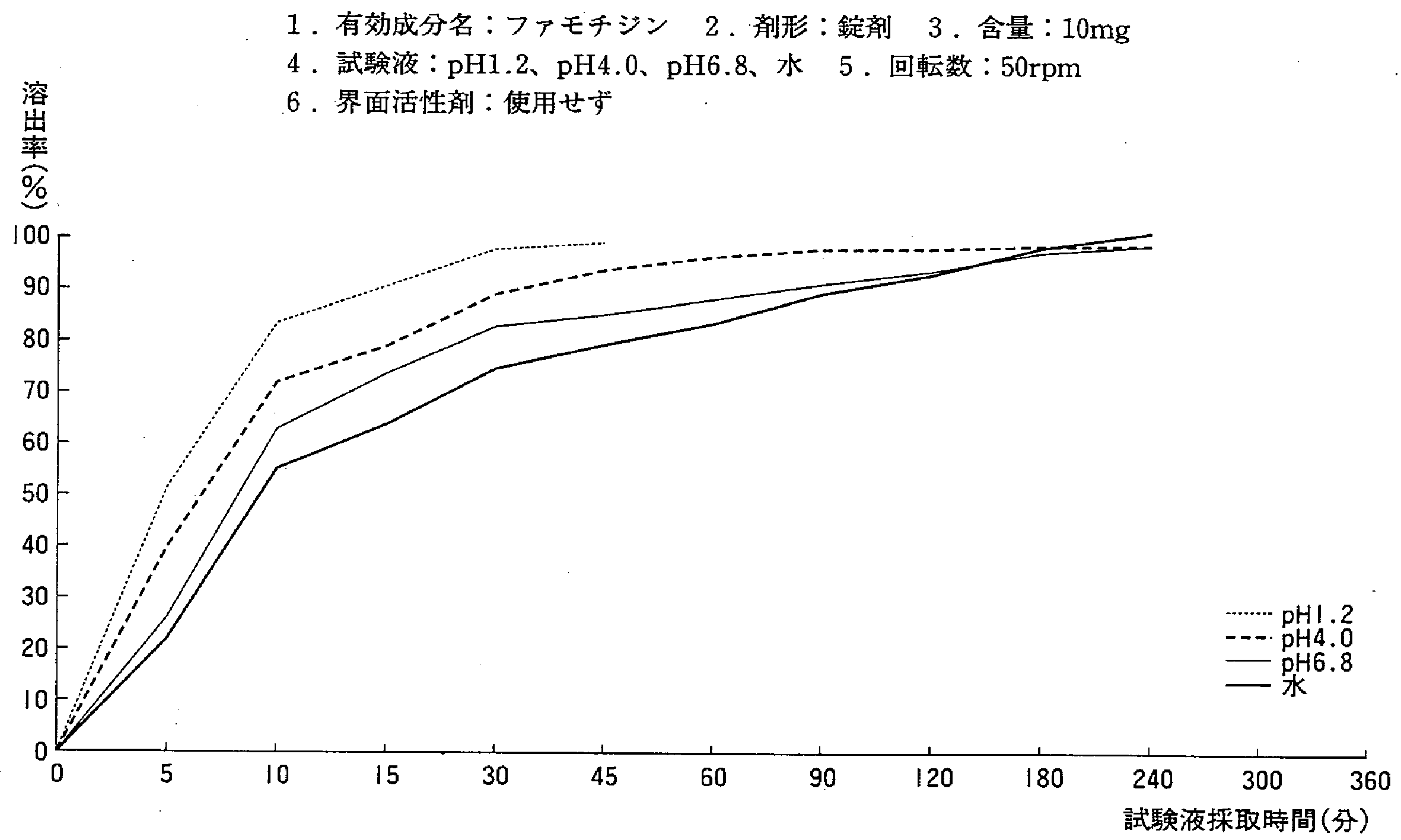 | 溶出曲线测定例 | 成分名称:ファモチジン 英文名:Famotidine 含量:10mg ![]() |