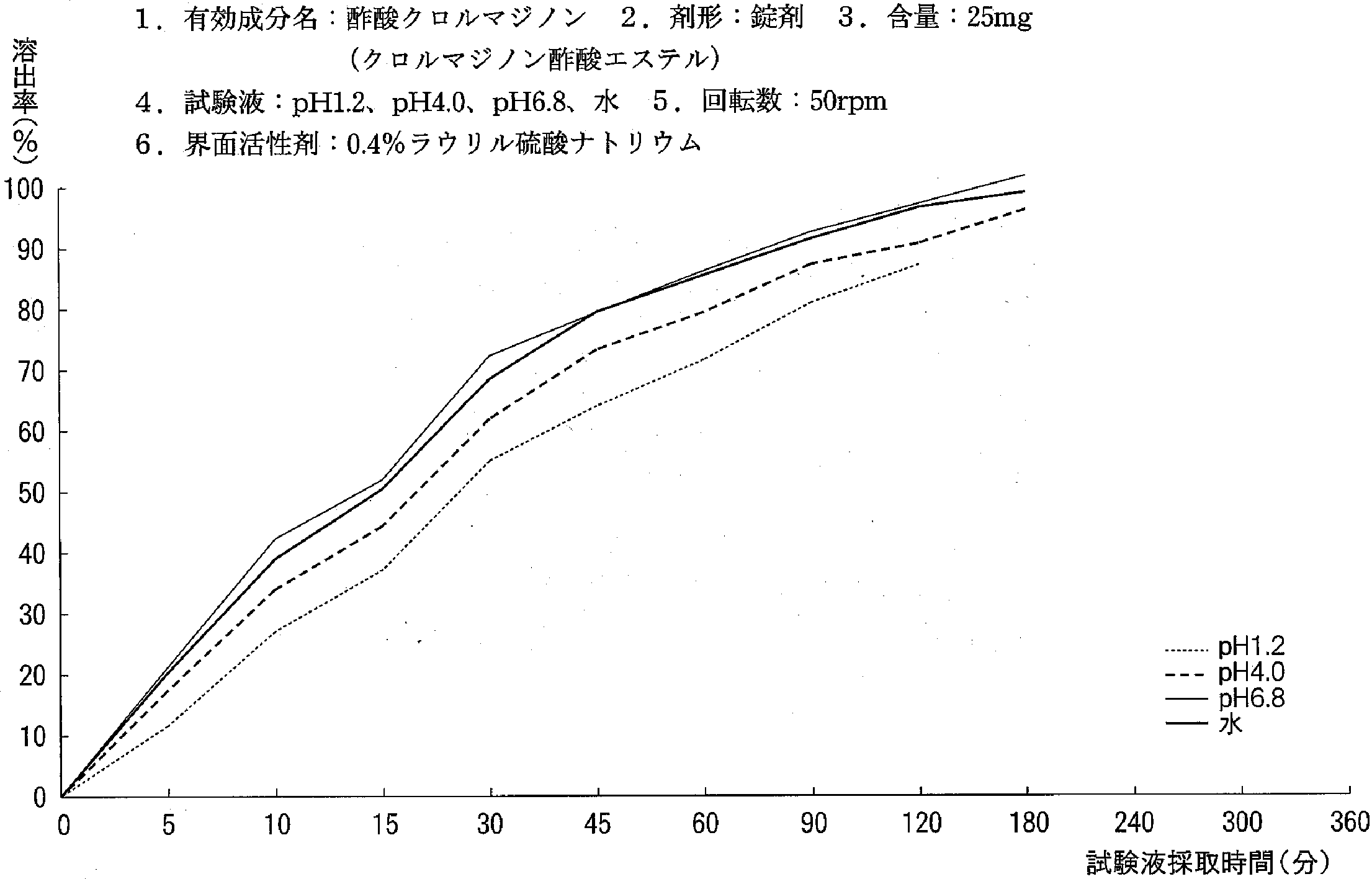 | 溶出曲线测定例 | 成分名称:酢酸クロルマジノン(クロルマジノン酢酸エステル) 英文名:Chlormadinone Acetate 含量:25mg ![]() |