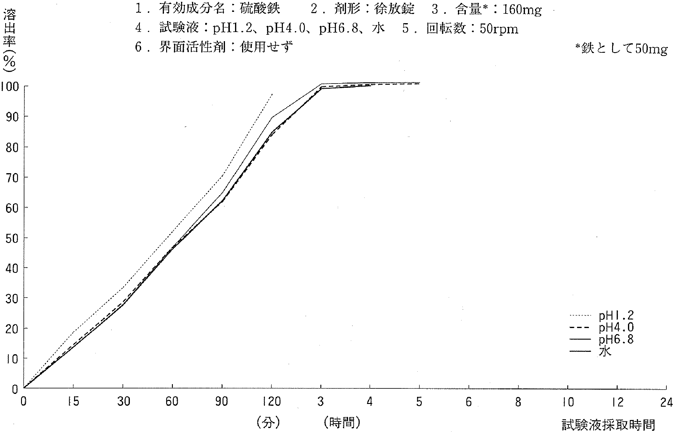 | 溶出曲线测定例 | 成分名称:硫酸鉄 英文名:Ferrous Sulfate 含量:50mg ![]() |