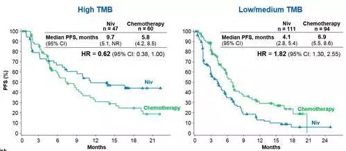 科学研究容不得侥幸心理,真理也是越辩越明,面对基于PD-1治疗NSCLC的巨大市场,尤其是一线治疗市场,BMS放弃这一领域几乎是不可能的。由于对PD-L1表达检测,本身就存在一些挑战[4,5],在新的回顾性研究中,研究人员认真考虑了所有可能的影响因素。最终,在2017年4月的AACR大会上,新研究探索了在TMB高表达病人中免疫治疗是否优于铂类为基础的化疗,结果得到了肯定!这是第一项分析TMB和PD-1抑制剂的临床获益相关性的重量级III期随机对照研究。这项回顾性研究显示,Opdivo在TMB高表达病人中ORR和PFS结果显著优于铂类为基础化疗。