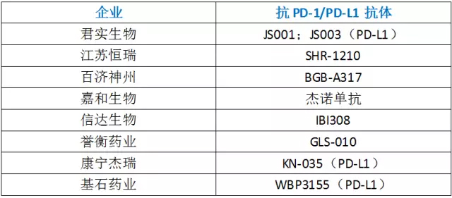 附:国内获得PD-1/PD-L1药物临床批件的企业(不完全统计)