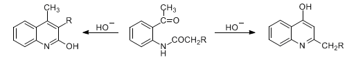 | 068. | Camps Quinoline Synthesis R. Camps, Ber. 22, 3228 (1899); Arch. Pharm. 237, 659 (1899); 239, 591 (1901). Formation of hydroxyquinolines from o-acylaminoacetophenones in alcoholic sodium hydroxide. Two isomers are produced; the relative proportions are mainly determined by the residue on the amino nitrogen: