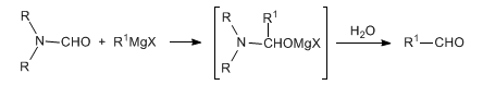 | 056. | Bouveault Aldehyde Synthesis L. Bouveault, Bull. Soc. Chim. Fr. 31, 1306, 1322 (1904). Action of Grignard or organic lithium reagents on N,N-disubstituted formamides yields the homologous aldehydes: