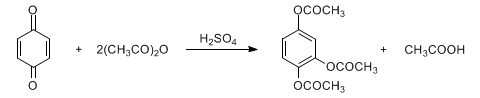 | 396. | Thiele Reaction (Thiele-Winter Acetoxylation) J. Thiele, Ber. 31, 1247 (1898). Formation of triacetoxy aromatic compounds by the reaction of quinones with acetic anhydride catalyzed by sulfuric acid or boron trifluoride: