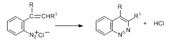 | 431. | Widman-Stoermer Synthesis O. Widman, Ber. 17, 722 (1884); R. Stoermer, H. Fincke, Ber. 42, 3115 (1909). Synthesis of cinnolines by cyclization of diazotized o-aminoarylethylenes at room temperature:
