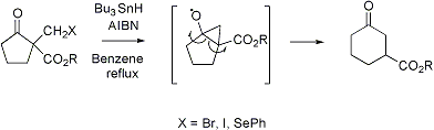 Free radical mediated ring expansions of haloalkyl β-ketoesters: