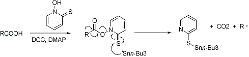 | 20. | Barton Decarboxylation D. H. R. Barton et al., Chem. Commun. 1983, 939; eidem, Tetrahedron 41, 3901 (1985). Radical decarboxylation of organic acids to the corresponding noralkane with tri-n-butyltin hydride or t-butylmercaptan: