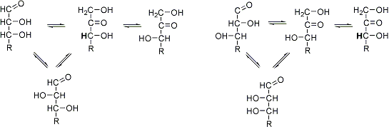 | 237. | Lobry de Bruyn-van Ekenstein Transformation C. A. Lobry de Bruyn, Rec. Trav. Chim. 14, 150 (1895); C. A. Lobry de Bruyn, W. A. van Ekenstein, ibid. 195, 203; 16, 262 (1897). Isomerization of carbohydrates in alkaline media, considered to embrace both epimerization of aldoses and ketoses and aldose-ketose interconversion: