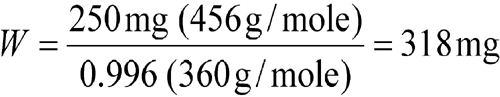 in which W is the actual weighed amount; a is the prescribed or pharmacist-determined weight of the active or functional moiety of drug or added substance; b is the chemical formula weight of the ingredient, including waters of hydration for hydrous ingredients; d is the fraction of dry weight when the percent by weight of adsorbed moisture content is known from the loss on drying procedure (see Loss on Drying