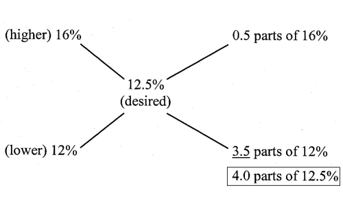 Alligation is a rapid method of determining the proportions in which substances of different strengths are mixed to yield a desired strength or concentration. Once the proportion is found, the calculation may be performed to find the exact amounts of substances required. Set up the problem as follows.