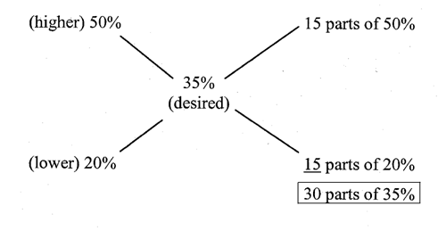 Instead of using alligation to solve the above problems, algebra may be used, following the scheme outlined below.