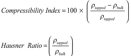 Alternatively, the compressibility index and Hausner ratio may be calculated using measured values for bulk density (