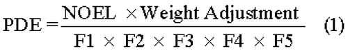 PDE is derived from the no-observed-effect level (NOEL), or the lowest-observed effect level (LOEL), in the most relevant animal study as follows: