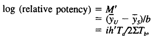 in which i is the logarithm of the ratio of the high dose to the low dose and is the same for each preparation, and h¢ is the number of preparations represented by two dosage levels and included in the calculation of the value of b.