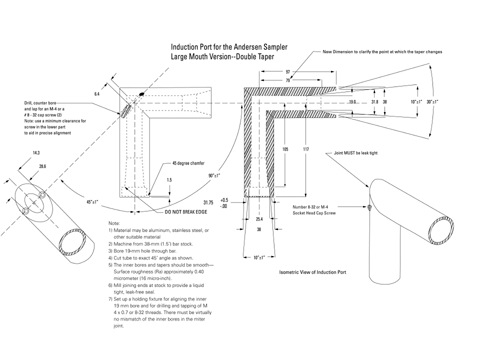 Fig. 4b. Apparatus 1: Expanded view of the entrance cone for mounting induction port on the Andersen cascade impactor without preseparator. Material may be aluminum, stainless steel, or other suitable material. Surface roughness (Ra) should be approximately 0.4 µm.