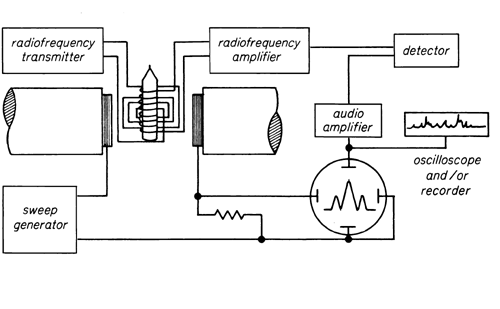 Various instrument configurations are possible. The arrangement of a typical double-coil spectrometer, as one might see in the lower resolution 60-MHz and 100-MHz CW instruments, is illustrated in Figure 1.