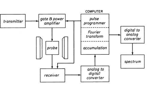 The block diagram of a typical high-resolution pulsed spectrometer is shown in Figure 2.