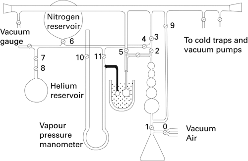 If the principle of operation of the instrument requires the determination of the dead volume in the sample tube, for example, by the admission of a nonadsorbed gas, such as helium, this procedure is carried out at this point, followed by evacuation of the sample. The determination of dead volume may be avoided using difference measurements: that is, by means of reference and sample tubes connected by a differential transducer. The adsorption of nitrogen gas is then measured as described below.