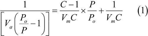 The data are treated according to the Brunauer, Emmett and Teller (BET) adsorption isotherm equation: