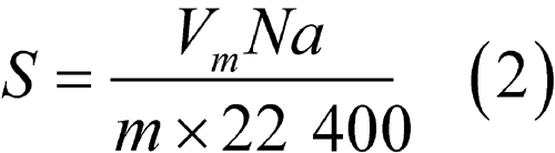 The specific surface area is calculated from Vm by equation (2) given above.