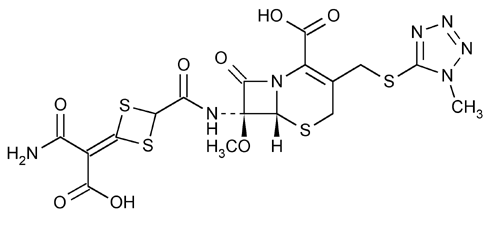 5-Thia-1-azabicyclo[4.2.0]oct-2-ene-2-carboxylic acid, 7-[[[4-(2-amino-1-carboxy-2-oxoethylidene)-1,3-dithietan-2-yl]carbonyl]amino]-7-methoxy-3-[[(1-methyl-1H-tetrazol-5-yl)-thio]methyl]-8-oxo-, [6R-(6 (6R,7S)-4-[[2-Carboxy-7-methoxy-3-[[(1-methyl-1H-tetrazol-5-yl)thio]methyl]-8-oxo-5-thia-1-azabicyclo[4.2.0]oct-2-en-7-yl]carbamoyl]-1,3-dithietane-D2, (6R,7S)-7-[4-(Carbamoylcarboxymethylene)-1,3-dithiethane-2-carboxamido]-7-methoxy-3-[[(1-methyl-1H-tetrazol-5-yl)thio]methyl]-8-oxo-5-thia-1-azabicyclo[4.2.0]oct-2-ene-2-carboxylic acid » Cefotetan contains not less than 950 µg and not more than 1030 µg of cefotetan (C17H17N7O8S4) per mg, calculated on the anhydrous basis.