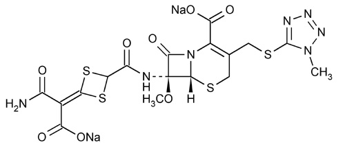 5-Thia-1-azabicyclo[4.2.0]oct-2-ene-2-carboxylic acid, 7-[[[4-(2-amino-1-carboxy-2-oxoethylidene)-1,3-dithietan-2-yl]carbonyl]amino]-7-methoxy-3-[[(1-methyl-1H-tetrazol-5-yl)thio]methyl]-8-oxo-, disodium salt, [6R-(6 (6R,7S)-4-[[2-Carboxy-7-methoxy-3-[[(1-methyl-1H-tetrazol-5-yl)thio]methyl]-8-oxo-5-thia-1-azabicyclo[4.2.0]oct-2-en-7-yl]carbamoyl]-1,3-dithietane-D2, (6R,7S)-7-[4-(Carbamoylcarboxymethylene)-1,3-dithietane-2-carboxamido]-7-methoxy-3-[[(1-methyl-1H-tetrazol-5-yl)thio]methyl]-8-oxo-5-thia-1-azabicyclo[4.2.0]oct-2-ene-2-carboxylic acid, disodium salt » Cefotetan Disodium contains the equivalent of not less than 830 µg and not more than 970 µg of cefotetan (C17H17N7O8S4) per mg, calculated on the anhydrous basis.