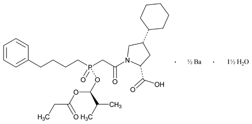 l-Proline, 4-cyclohexyl-1-[[[2-methyl-1-(1-oxopropoxy)propoxy](4-phenylbutyl)phosphinyl]acetyl]-, sodium salt, [1[S*(R*)],2 (4S)-4-Cyclohexyl-1-[(R)-[(S)-1-hydroxy-2-methylpropoxy](4-phenylbutyl)phosphinyl]acetyl-l-proline propionate (ester), sodium salt » Fosinopril Sodium contains not less than 97.5 percent and not more than 102.0 percent of C30H45NNaO7P, calculated on the anhydrous basis.