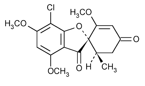 Spiro[benzofuran-[2](3H),1¢-2cyclohexene]-3,4¢-dione, 7-chloro-2¢,4,6-trimethoxy-6¢-methyl-, (1¢S-trans)-. 7-Chloro-2¢,4,6-trimethoxy-6¢ » Griseofulvin has a potency of not less than 900 µg of C17H17ClO6 per mg.