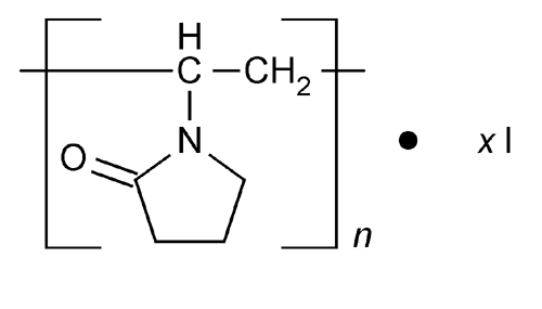 2-Pyrrolidinone, 1-ethenyl-, homopolymer, compd. with iodine. 1-Vinyl-2-pyrrolidinone polymer, compound with iodine » PovidoneIodine is a complex of Iodine with Povidone. It contains not less than 9.0 percent and not more than 12.0 percent of available iodine (I), calculated on the dried basis.