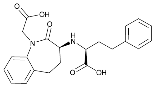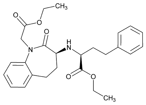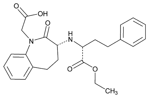 1H-1-Benzazepine-1-acetic acid, 3-[[1-(ethoxycarbonyl)-3-phenylpropyl]amino]-2,3,4,5-tetrahydro-2-oxo-, monohydrochloride, [S-(R*,R*)]-. (3S)-3-[[(1S)-1-Carboxy-3-phenylpropyl]amino]-2,3,4,5-tetrahydro-2-oxo-1H-1-benzazepine-1-acetic acid, 3-ethyl ester, monohydrochloride » Benazepril Hydrochloride contains not less than 98.0 percent and not more than 102.0 percent of C24H28N2O5·HCl, calculated on the dried basis.