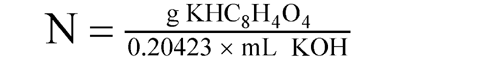 Empirical SolutionsIt is frequently difficult to prepare standard solutions of a desired theoretical normality, and this is not essential. A solution of approximately the desired normality is prepared and standardized by titration against a primary standard solution. The normality factor so obtained is used in all calculations where such empirical solutions are employed. If desired, an empirically prepared solution may be adjusted downward to a given normality provided it is strong enough to permit dilution.