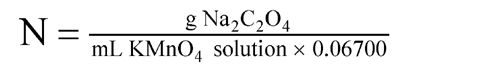 Accurately weigh about 200 mg of sodium oxalate, dried according to the instructions on its label, and dissolve it in 250 mL of water. Add 7 mL of sulfuric acid, heat to about 70
