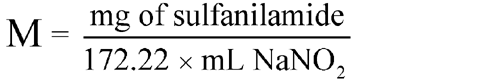 All Pharmacopeial assays that are volumetric in nature indicate the weight of the substance being assayed to which each mL of the primary volumetric solution is equivalent. In general, these equivalents may be derived by simple calculation from the data given under Molecular Formulas and Weights, in the Reference Tables.