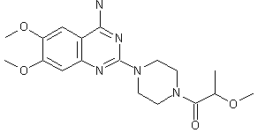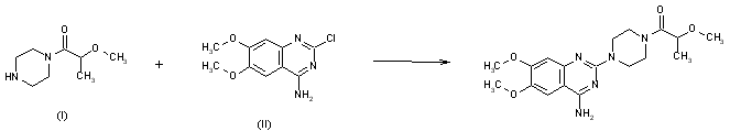 This compound can be obtained by the reaction of 1-(2-methoxy-propionyl)piperazine (I) with 2-chloro-4-amino-6,7-dimethoxyquinazoline (II).