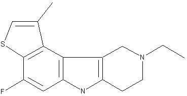 The reaction of 2-chloro-3,5-dinitrobenzoic acid (I) with thionil chloride, followed by treatment with diethyl ethoxymagnesium malonate gives diethyl 2-chloro-3,5-dinitrobenzoylmalonate (II), which is hydrolyzed and decarboxylated in hot sulfuric acid/propionic acid yielding 2-chloro-3,5-dinitroacetophenone (III). Reaction of (III) with thioglycolic acid by means of NaHCO3 in refluxing isopropanol gives the thioacetic acid compound (IV), which is cyclized in refluxing propionic acid yielding 3-methyl-5,7-dinitrobenzothiophene (V). Partial selective reduction of one of the nitro groups in (V) by means of ammonium sulfide in ethanol leads to 7-amino-3-methyl-5-nitrobenzothiophene (VI), which is diazotied by treatment with NaNO2 in hydrochloric acid. The following reaction with diethylamine in alkaline solution gives the triazene derivative (VII), which is finally fluorinated by reaction with anhydrous HF yielding 7-fluoro-3-methyl-5-nitrobenzothiophene (VIII). Catalytical reduction of (VIII) yields 5-amino-7-fluoro-3-methylbenzothiophene (IX), which is converted to 5-hydrazino-7-fluoro-3-methylbenzothiophene (X) by diazotation and subsequent reduction by means of stannous chloride in hydrochloric acid. The reaction of (X) with N-ethyl-4-piperidone (XI) in refluxing isopropanol gives the corresponding hydrazone, which is cyclized in refluxing isopropanol/HCl yiellding tiflucarbine base. Finally, this compound is converted to the lactate by means of lactic acid in acetone.