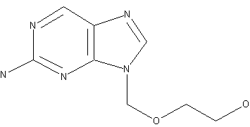 The condensation of 2-amino 6 chloropurine (I) with 2-benzyioxyethoxymethyl chloride (II), by means of K2CO3 in DMF gives 2-amino-6 chloro 9-(2 benzyloxyethoxymethyl)purine (III), which is then dechlorinated by reduction with H2 over Pd/C in ethanol containing triethylamine.