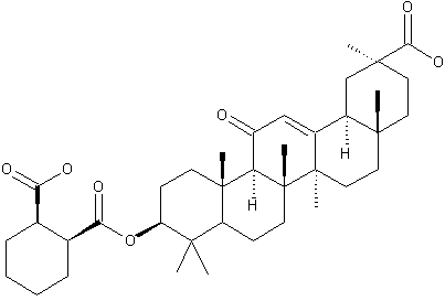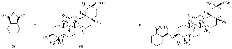 By reaction of cis-1,2-cyclohexanedicarboxylic anhydride (I) with 18-beta-glycyrrhetinic acid (II) in refluxing anhydrous pyridine.