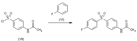 2) The reaction of fluorobenzene (VI) with N-acetylsulfanilyl chloride (VII) in the presence of anhydrous aluminum chloride gives the desired acetamide in one step.