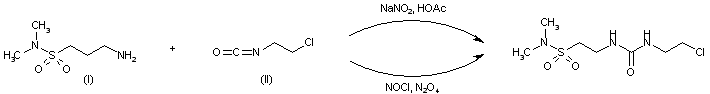 2) By condensation of (I) with N-(2-chloroethyl)-N-nitrosocarbamoyl hydrazide (IV) in ethanol with triethylamine as catalyst.